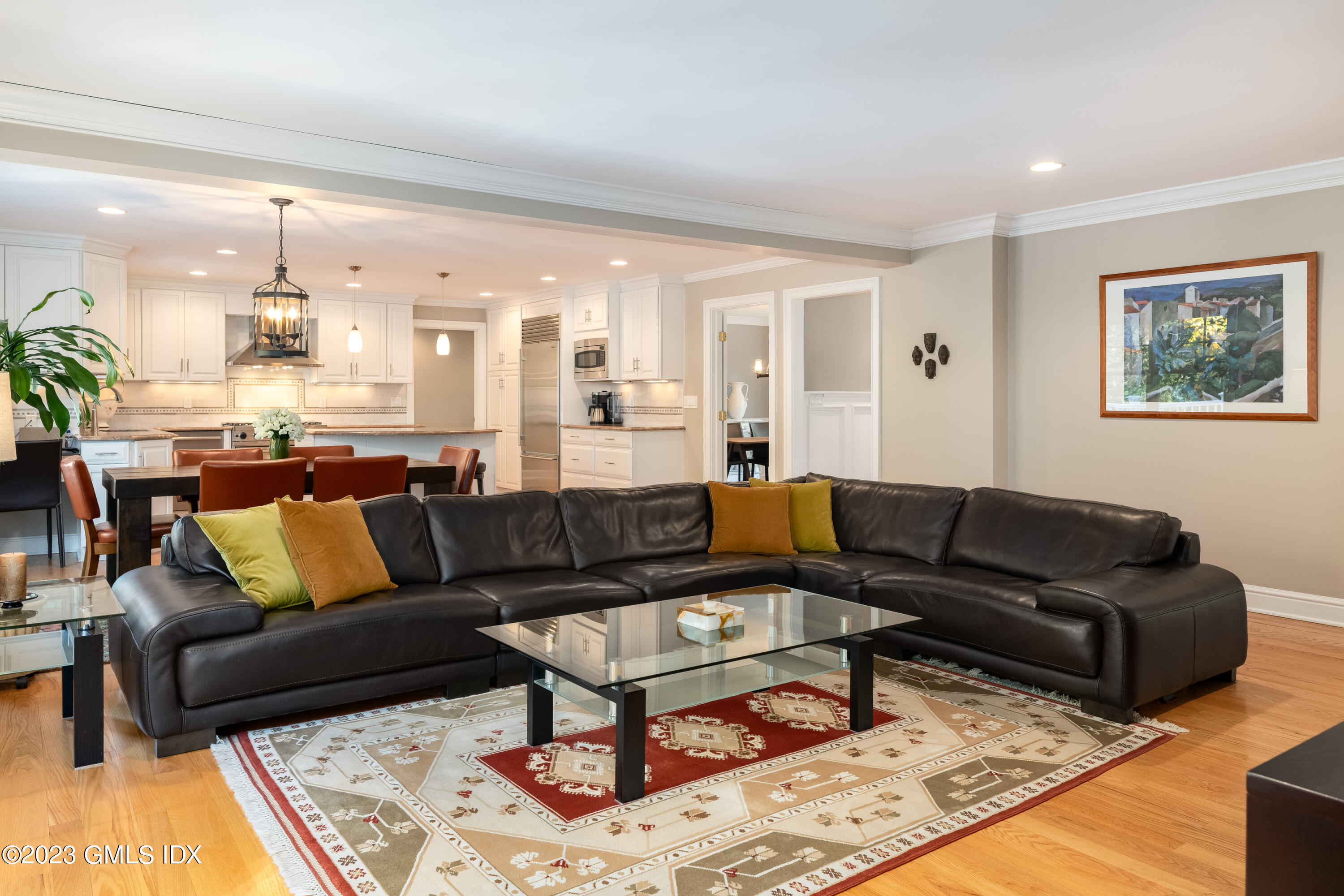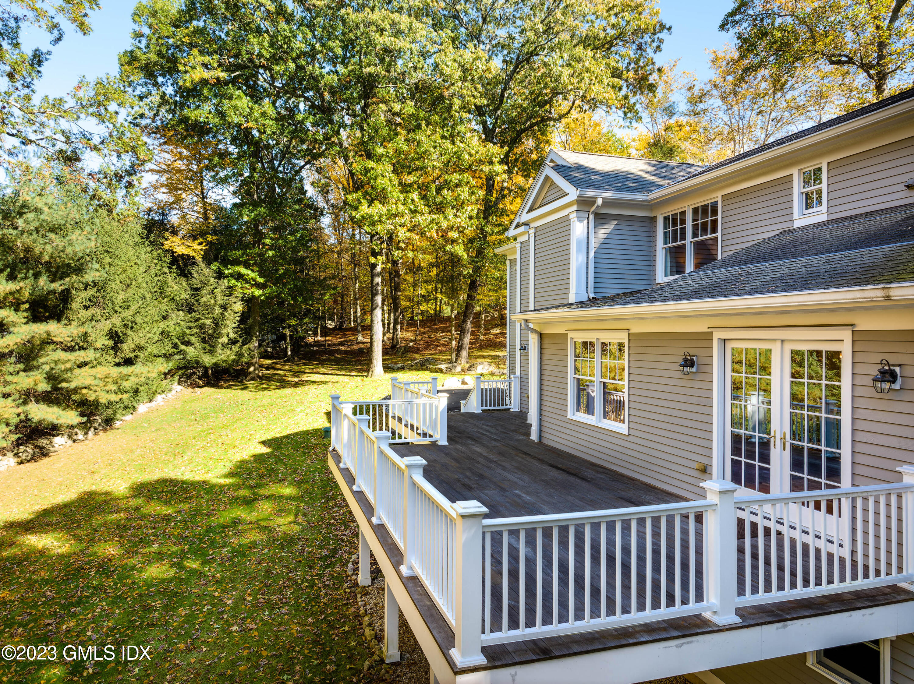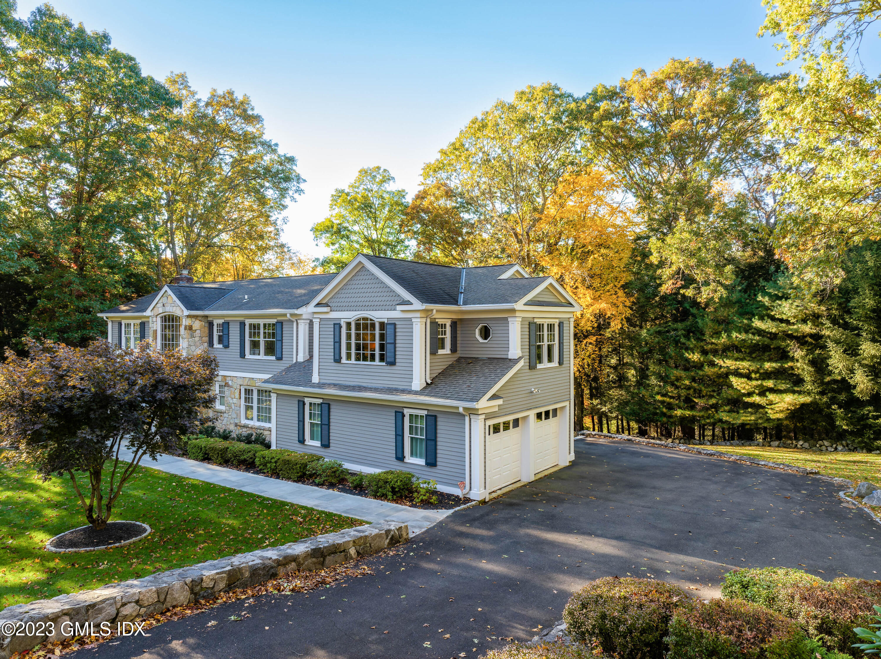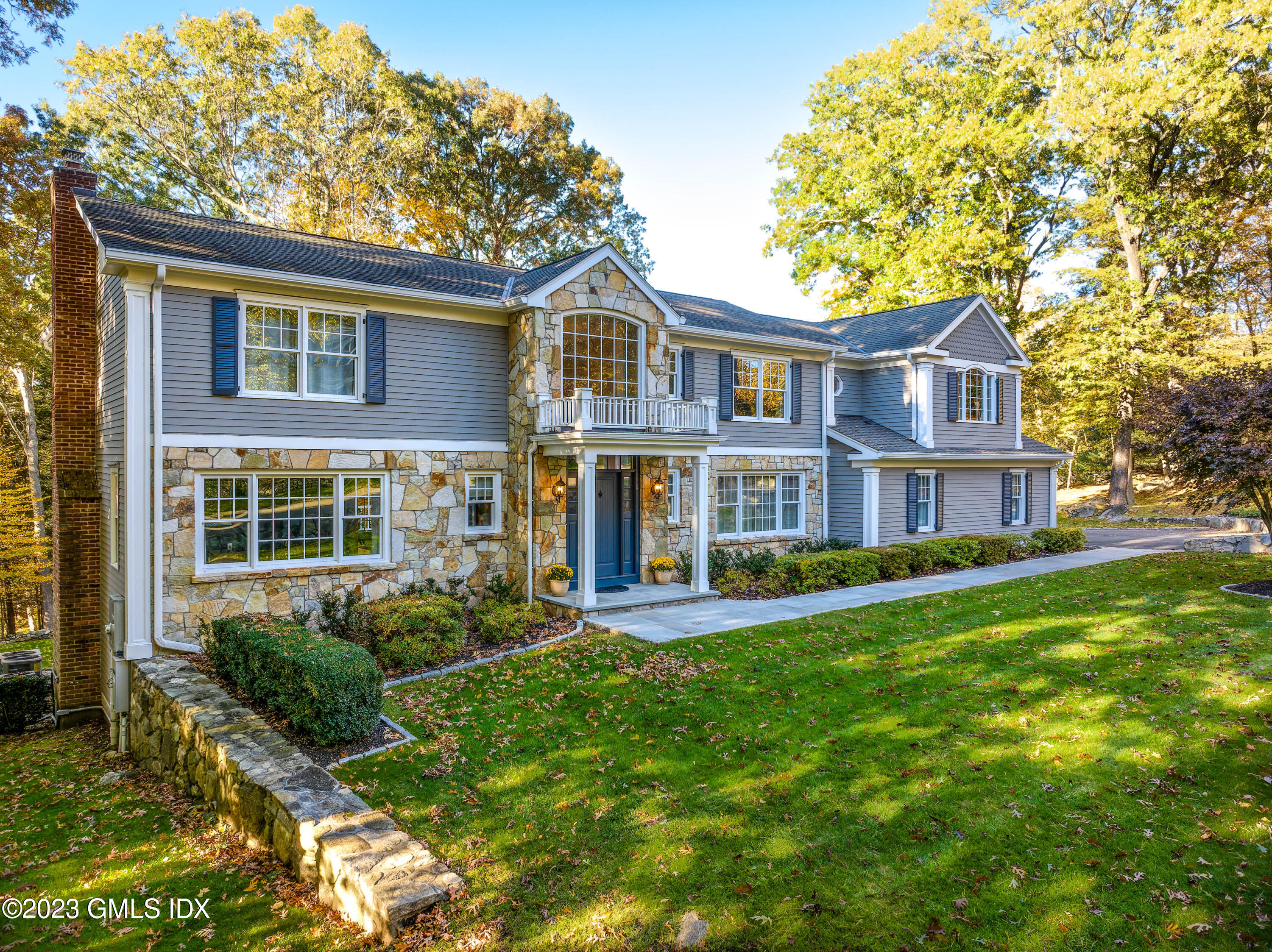 Like new renovation in 2007, this five-bedroom Colonial with entertaining deck graces one acre on a cul-de-sac near Stamford shops, schools and Merritt. Expansive 4,715 sq. ft. interior boasts hardwood floors, superb architectural details and generously scaled rooms infused with natural light from large picture windows. Double height center hall entry unfolds into open plan granite-clad kitchen, breakfast, family room; living room with fireplace, den; dining room, half bath, mudroom and attached three-car garage. Second floor features master suite with dual walk-in closets, spa tub, stall shower; four bedrooms and three baths. Walk-out lower-level features full bath, play/rec room, multi-purpose room and ample storage.