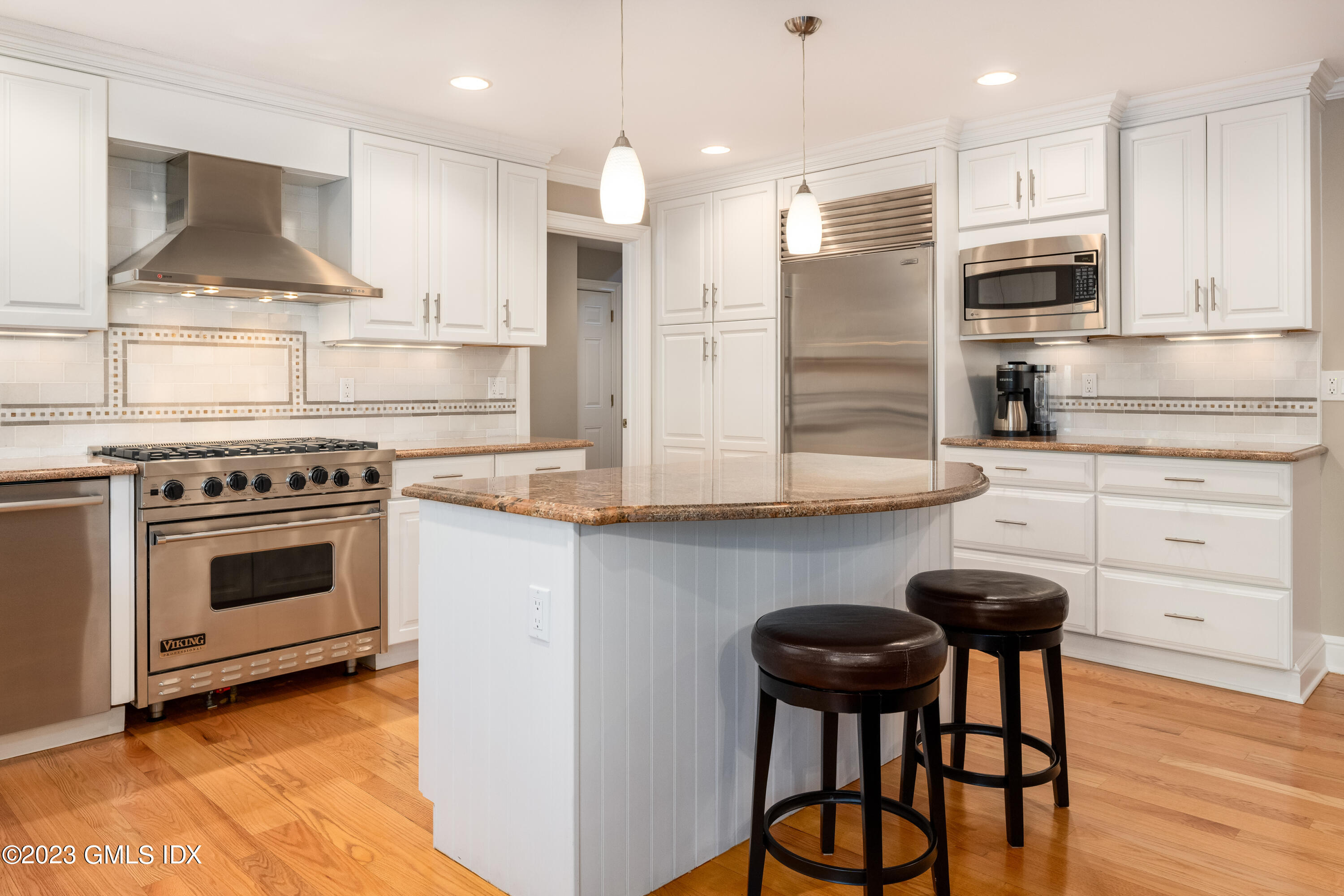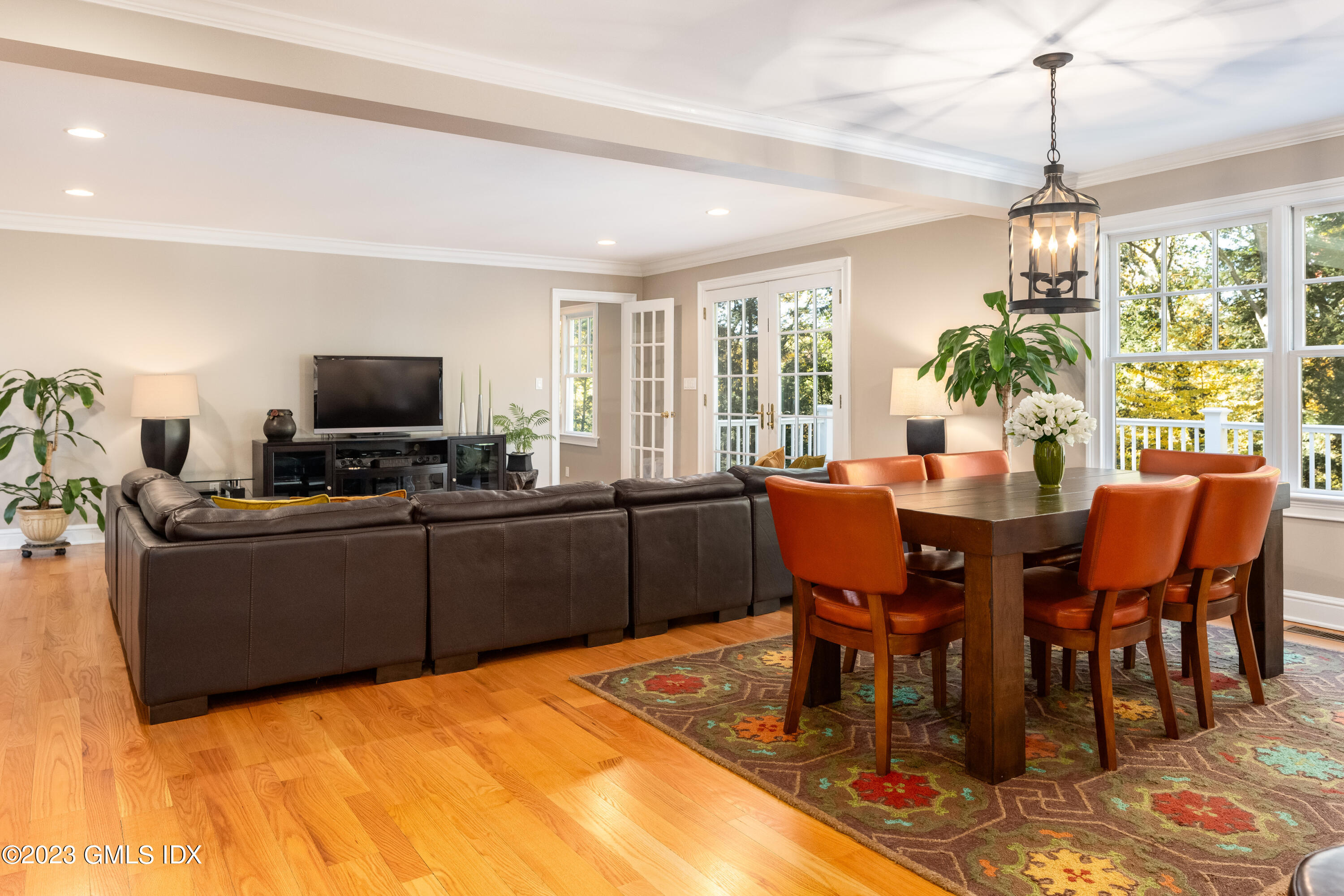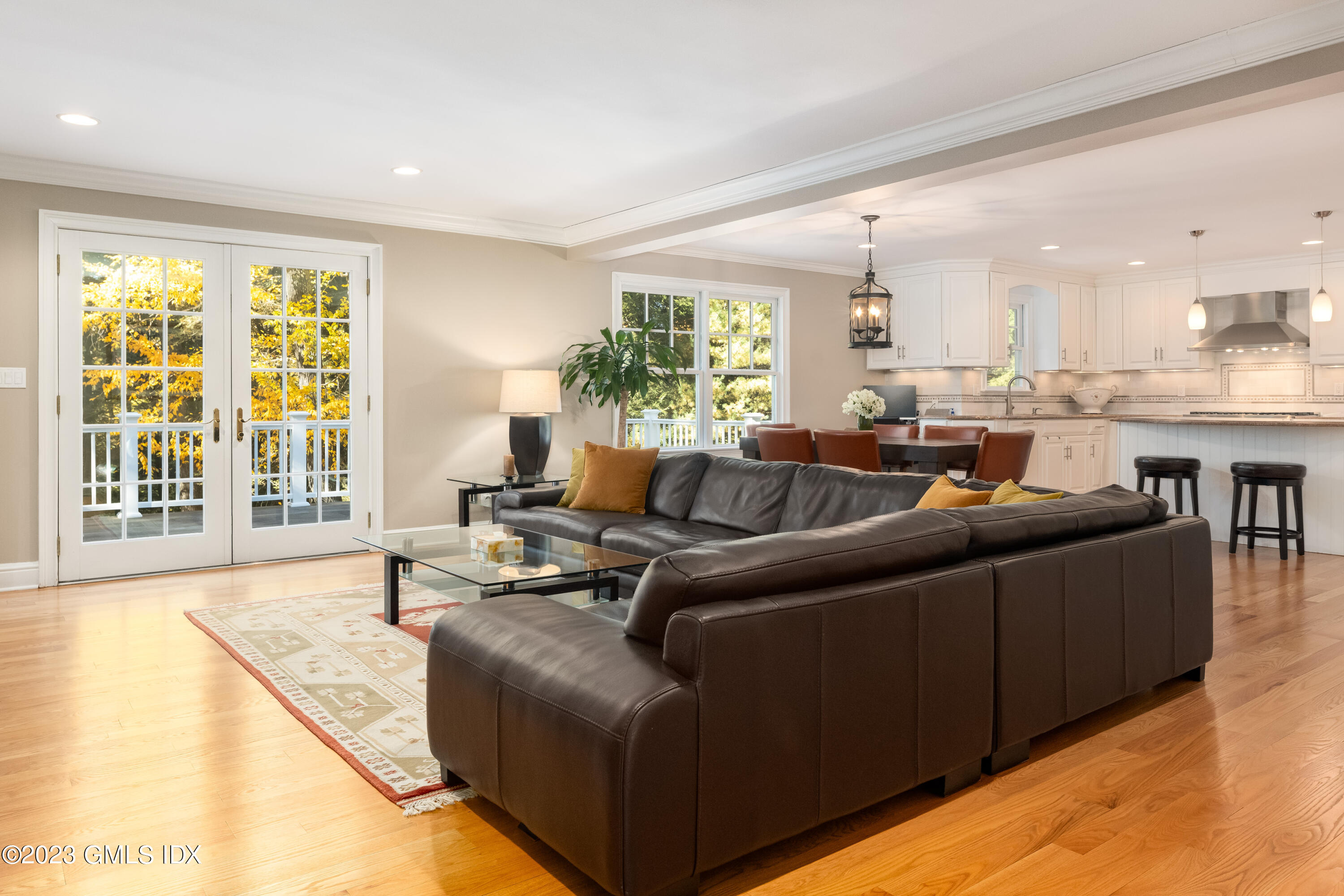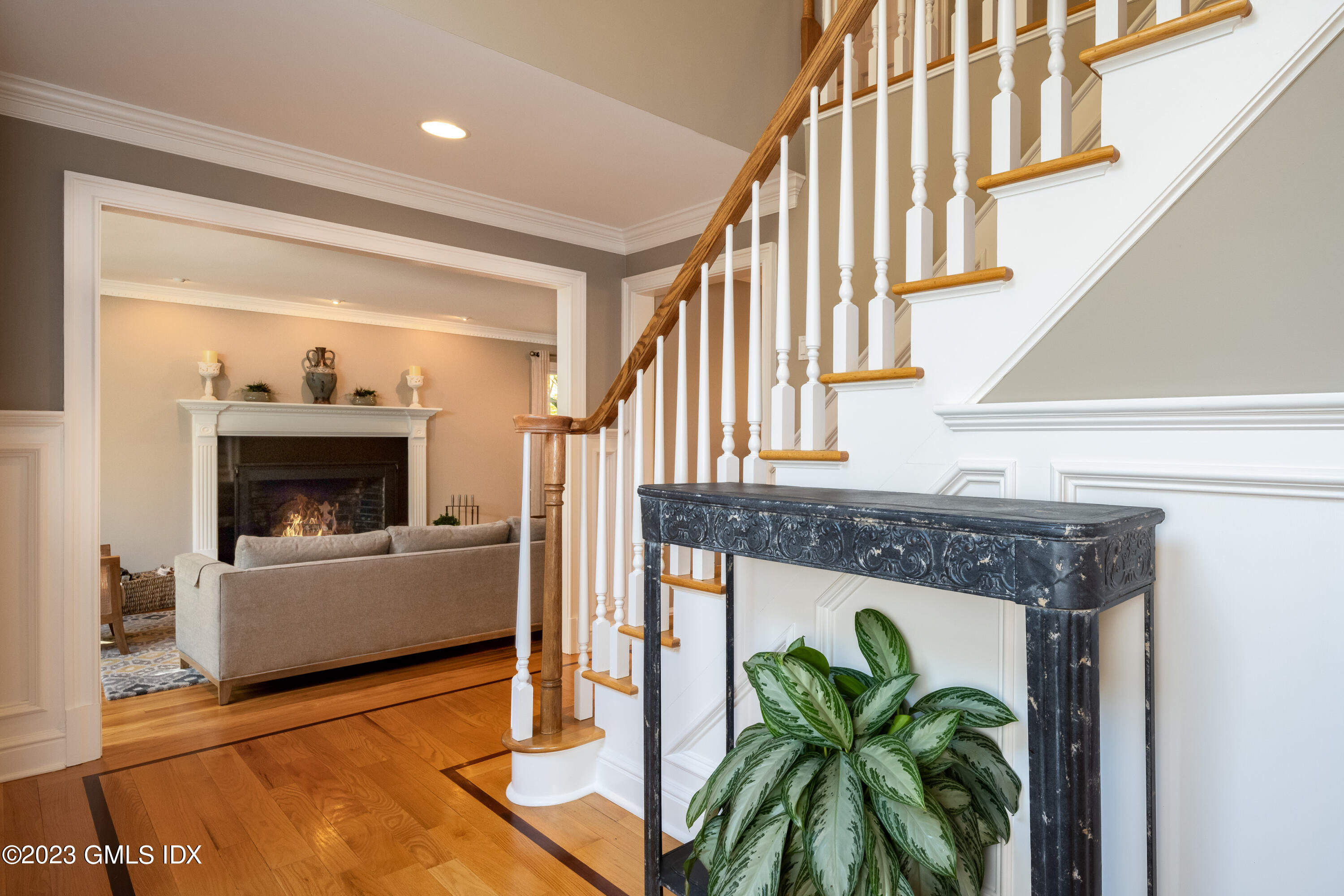 Like new renovation in 2007, this five-bedroom Colonial with entertaining deck graces one acre on a cul-de-sac near Stamford shops, schools and Merritt. Expansive 4,715 sq. ft. interior boasts hardwood floors, superb architectural details and generously scaled rooms infused with natural light from large picture windows. Double height center hall entry unfolds into open plan granite-clad kitchen, breakfast, family room; living room with fireplace, den; dining room, half bath, mudroom and attached three-car garage. Second floor features master suite with dual walk-in closets, spa tub, stall shower; four bedrooms and three baths. Walk-out lower-level features full bath, play/rec room, multi-purpose room and ample storage.