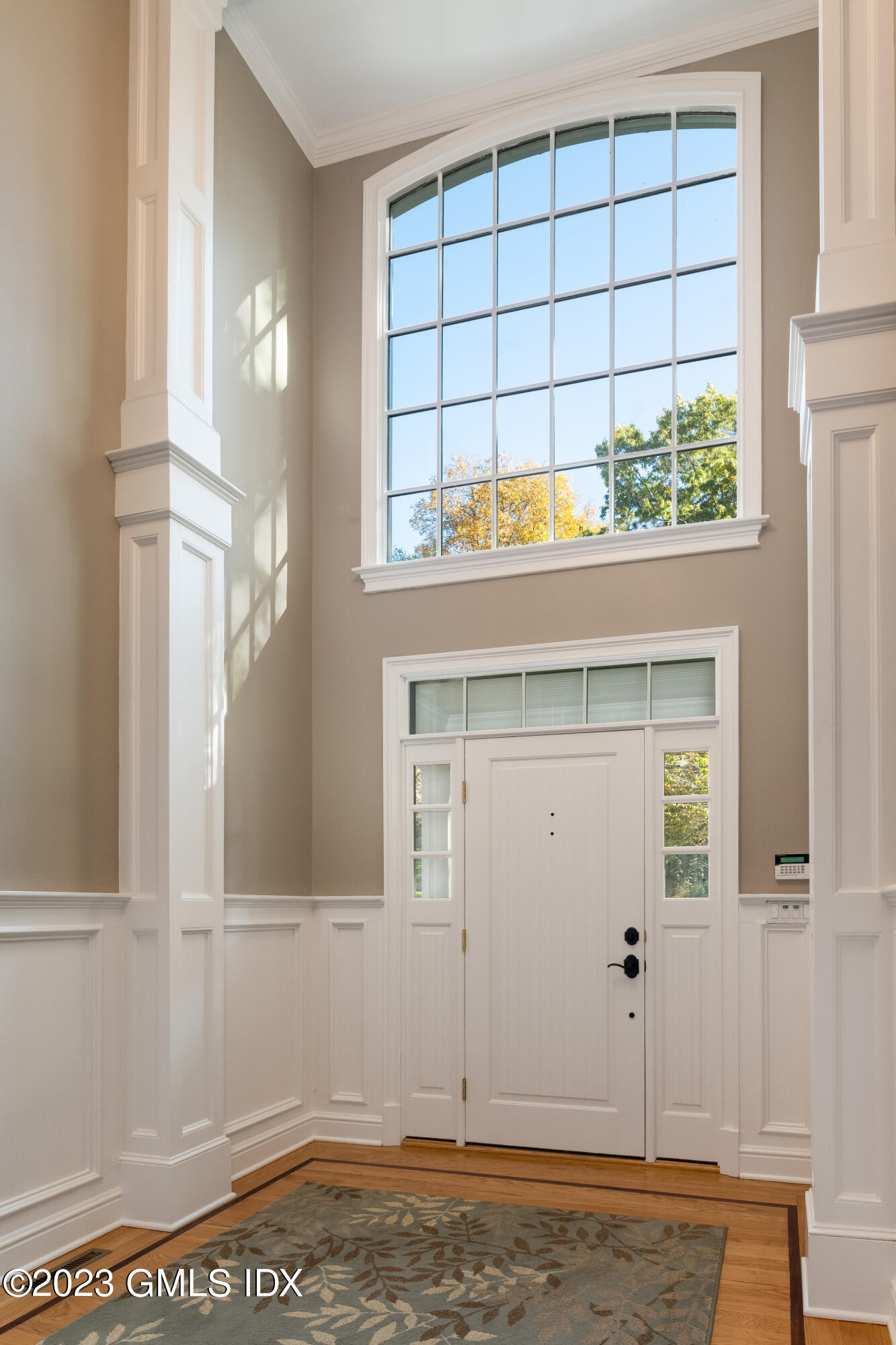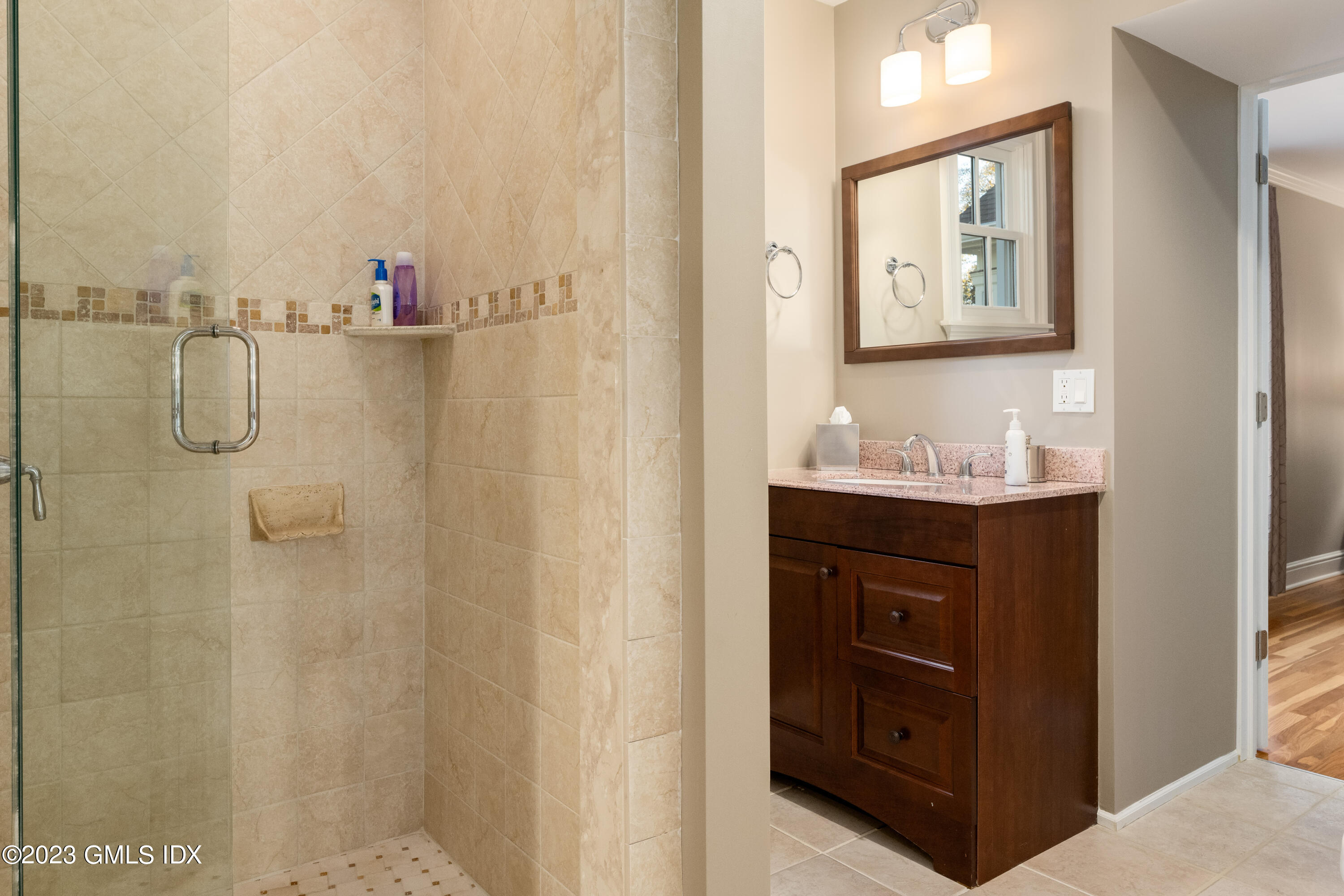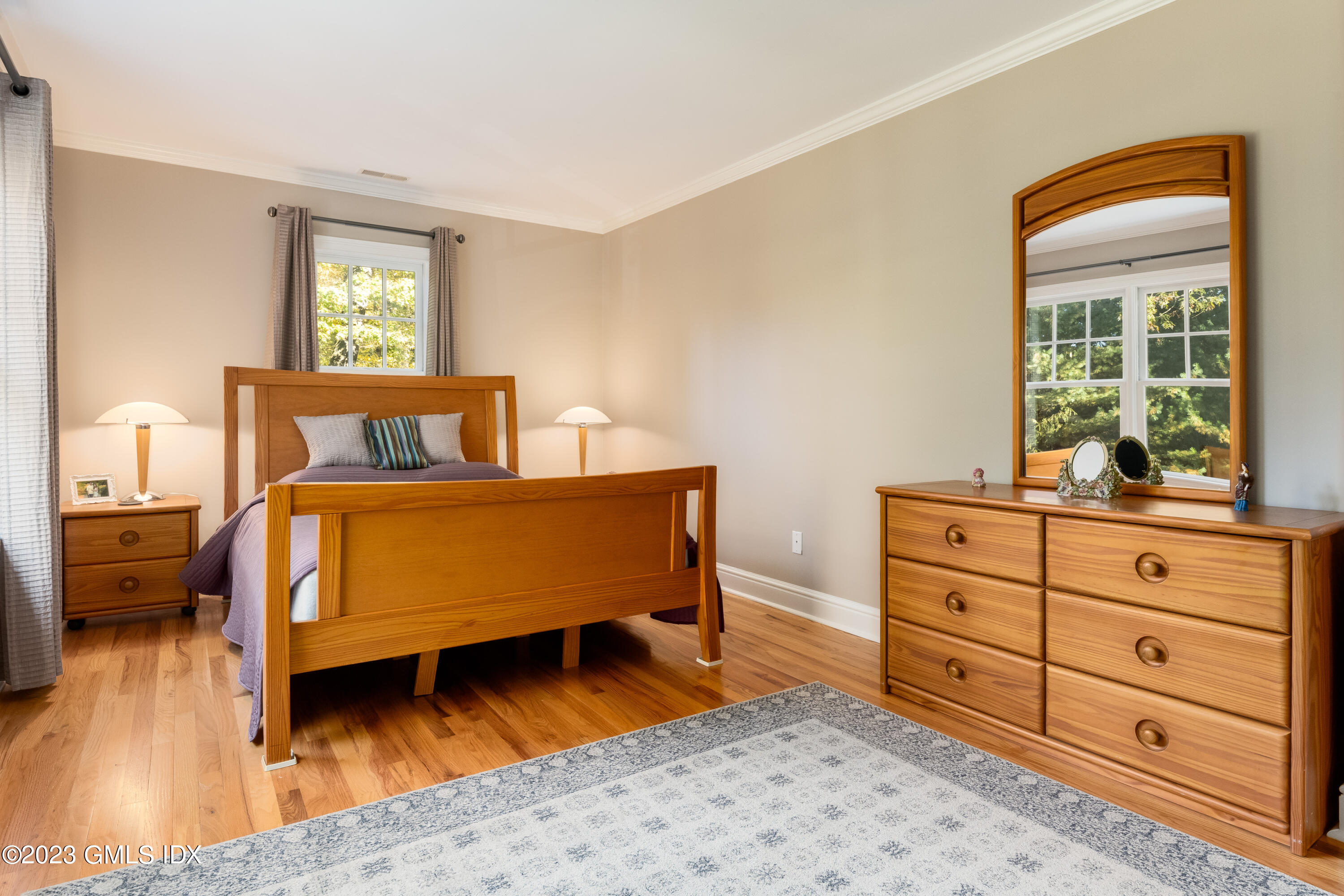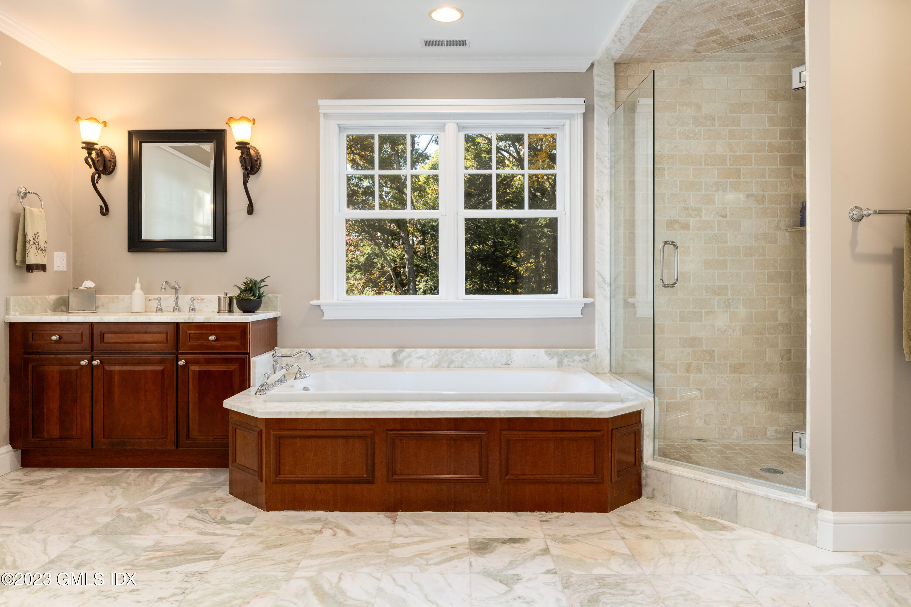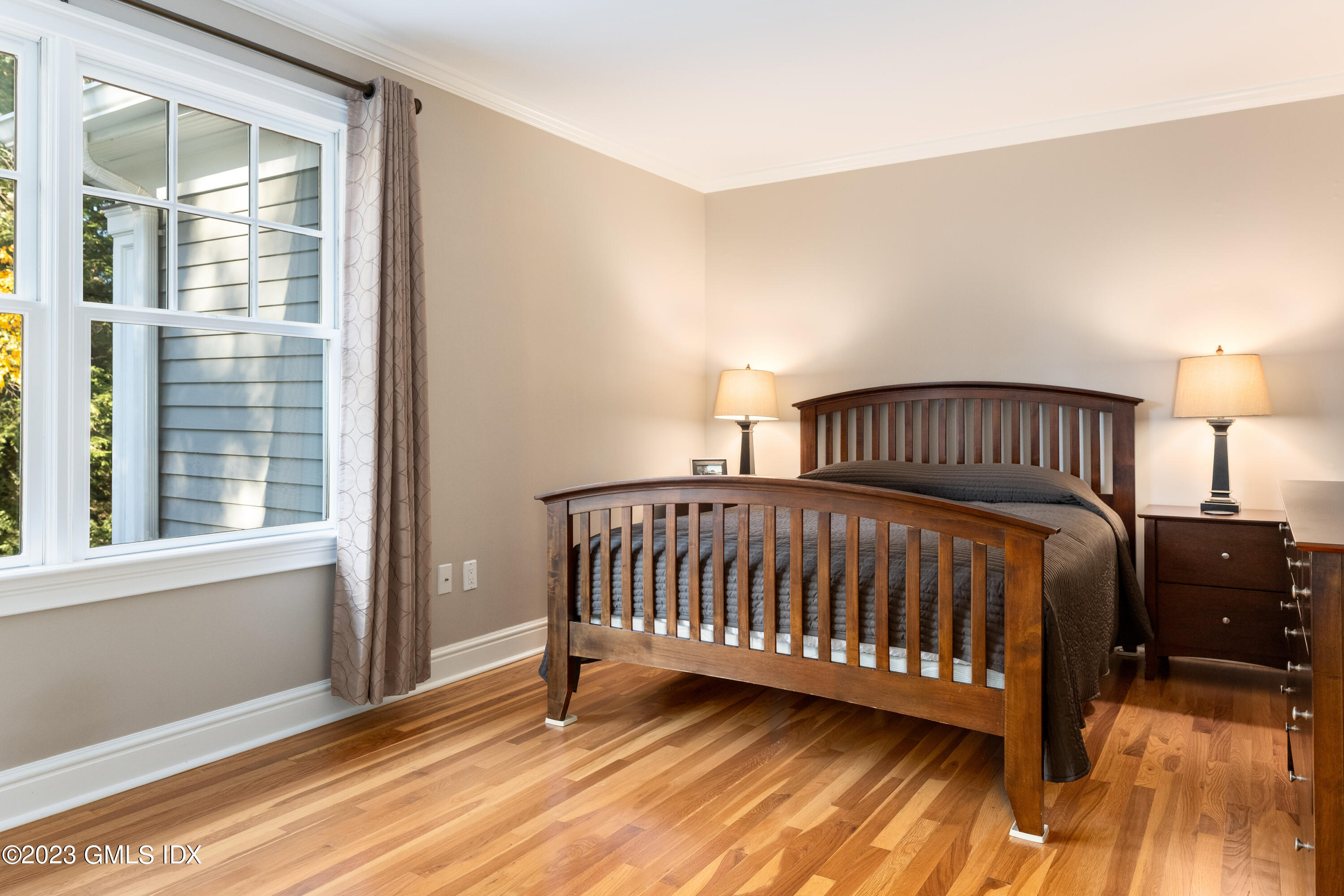 Like new renovation in 2007, this five-bedroom Colonial with entertaining deck graces one acre on a cul-de-sac near Stamford shops, schools and Merritt. Expansive 4,715 sq. ft. interior boasts hardwood floors, superb architectural details and generously scaled rooms infused with natural light from large picture windows. Double height center hall entry unfolds into open plan granite-clad kitchen, breakfast, family room; living room with fireplace, den; dining room, half bath, mudroom and attached three-car garage. Second floor features master suite with dual walk-in closets, spa tub, stall shower; four bedrooms and three baths. Walk-out lower-level features full bath, play/rec room, multi-purpose room and ample storage.