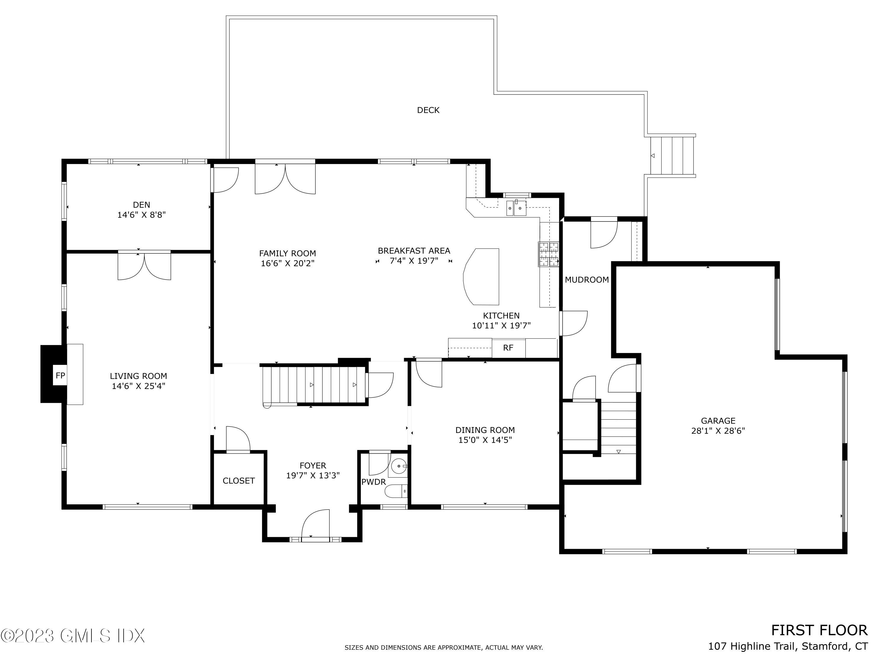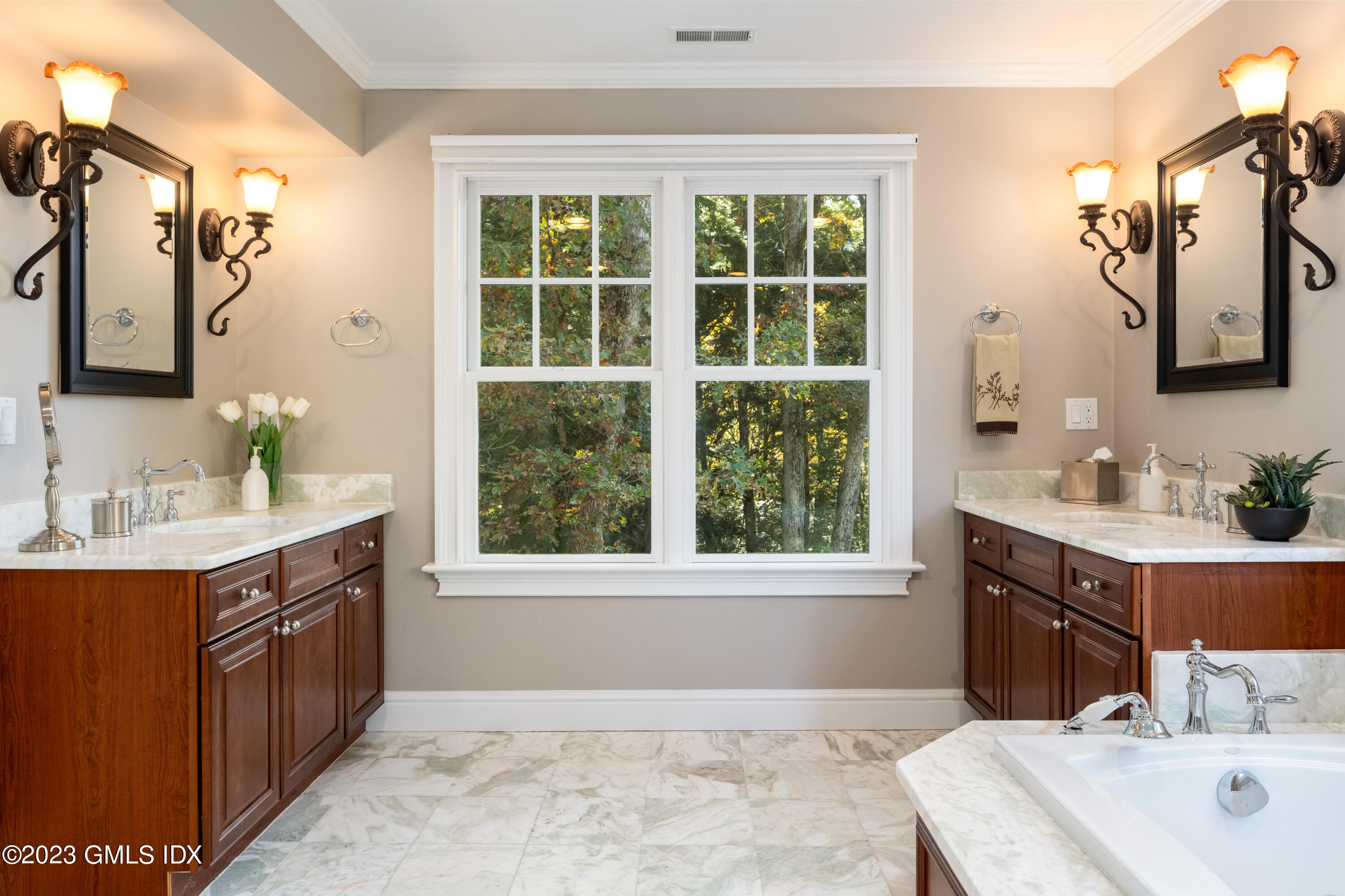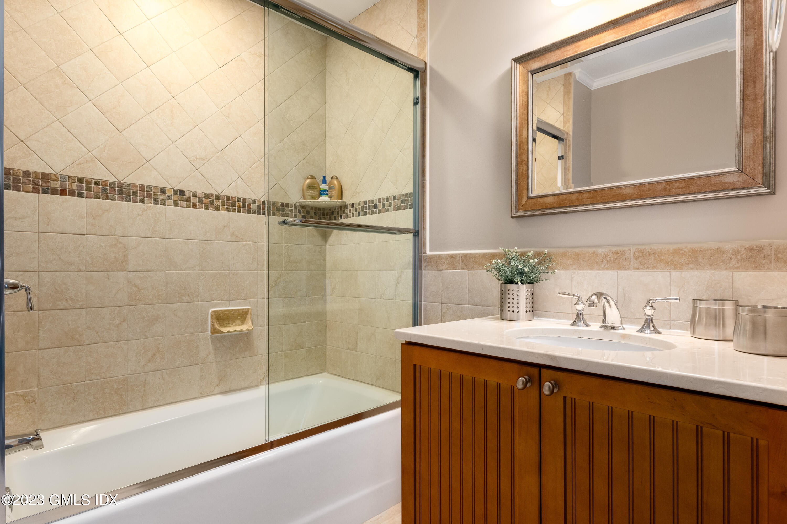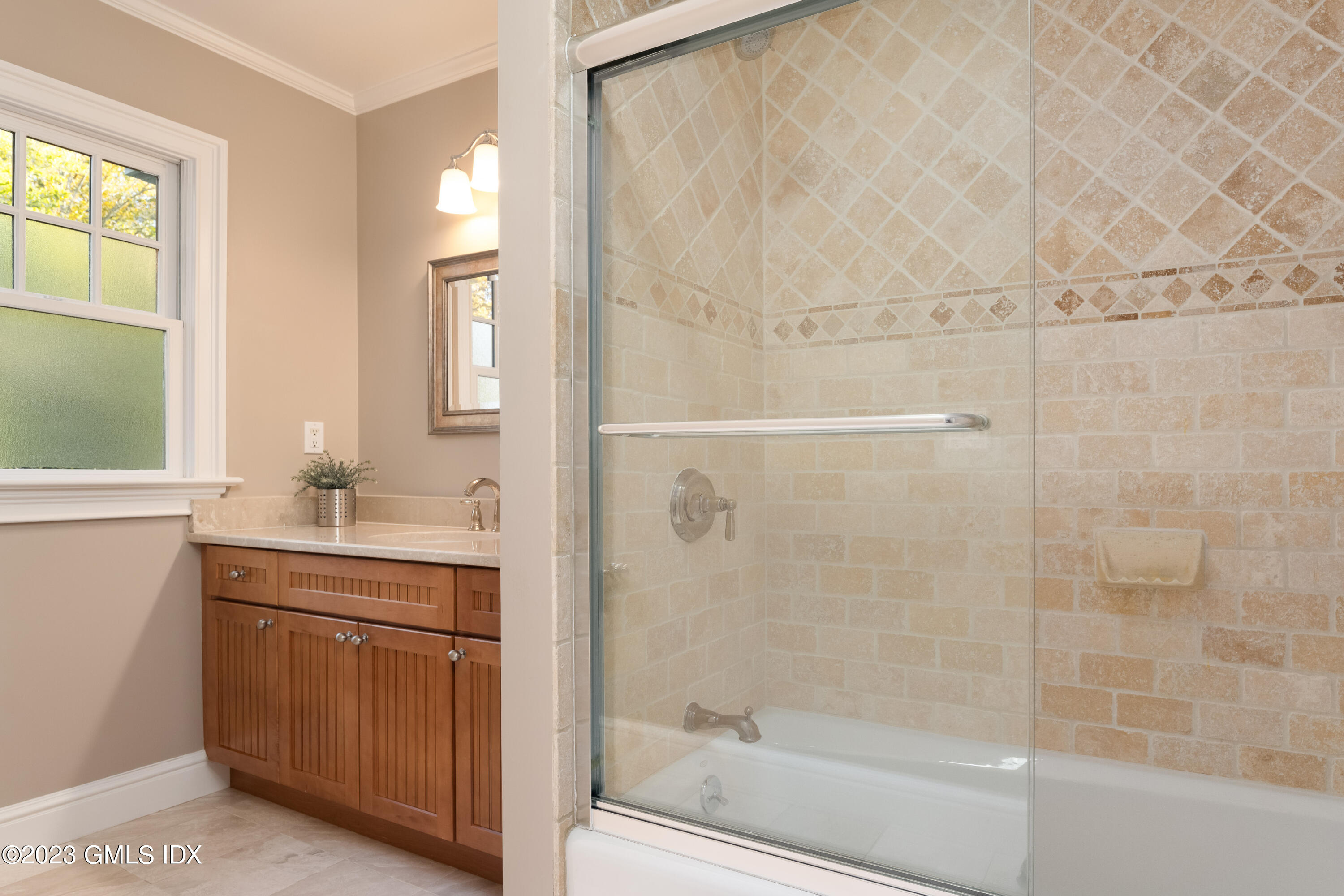 Like new renovation in 2007, this five-bedroom Colonial with entertaining deck graces one acre on a cul-de-sac near Stamford shops, schools and Merritt. Expansive 4,715 sq. ft. interior boasts hardwood floors, superb architectural details and generously scaled rooms infused with natural light from large picture windows. Double height center hall entry unfolds into open plan granite-clad kitchen, breakfast, family room; living room with fireplace, den; dining room, half bath, mudroom and attached three-car garage. Second floor features master suite with dual walk-in closets, spa tub, stall shower; four bedrooms and three baths. Walk-out lower-level features full bath, play/rec room, multi-purpose room and ample storage.